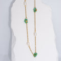 Embrace a beachy vibe with this stunning necklace featuring freshwater pearls and blossom accents. Perfect for seaside strolls or summer soirées, it adds a touch of ocean-inspired elegance to any outfit. Dive into effortless style with blossom Pearls.