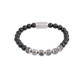 Enhance your look with the Peanthom Beads bracelet, combining timeless style and a touch of natural elegance. This bracelet features sleek stainless steel cylindrical beads paired with a series of unique grey natural stones, offering a subtle yet striking contrast. Designed for versatile wear, from casual beach outings to more refined settings, its durability and chic design make it a must-have accessory for any fashion-conscious man.