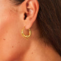 These exquisite gold hoop earrings feature a timeless crescent design adorned with delicate beaded detailing, adding a touch of sophistication and charm. Perfect for both everyday wear and special occasions, their lightweight and versatile design make them an effortless choice for any outfit. The polished gold finish enhances their elegance, while the intricate accents provide a unique and modern flair. A must-have accessory for elevating your jewelry collection with subtle yet striking style.