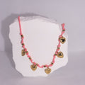 Add a playful touch to your outfit with this vibrant necklace, featuring a pink braided cord adorned with polished gold-tone beads and delicate heart-shaped pendants. The combination of bold color and charming details creates a versatile accessory that pairs effortlessly with casual and dressy looks. Lightweight and comfortable to wear, this necklace is the perfect blend of fun and elegance, making it a standout piece in any jewelry collection.